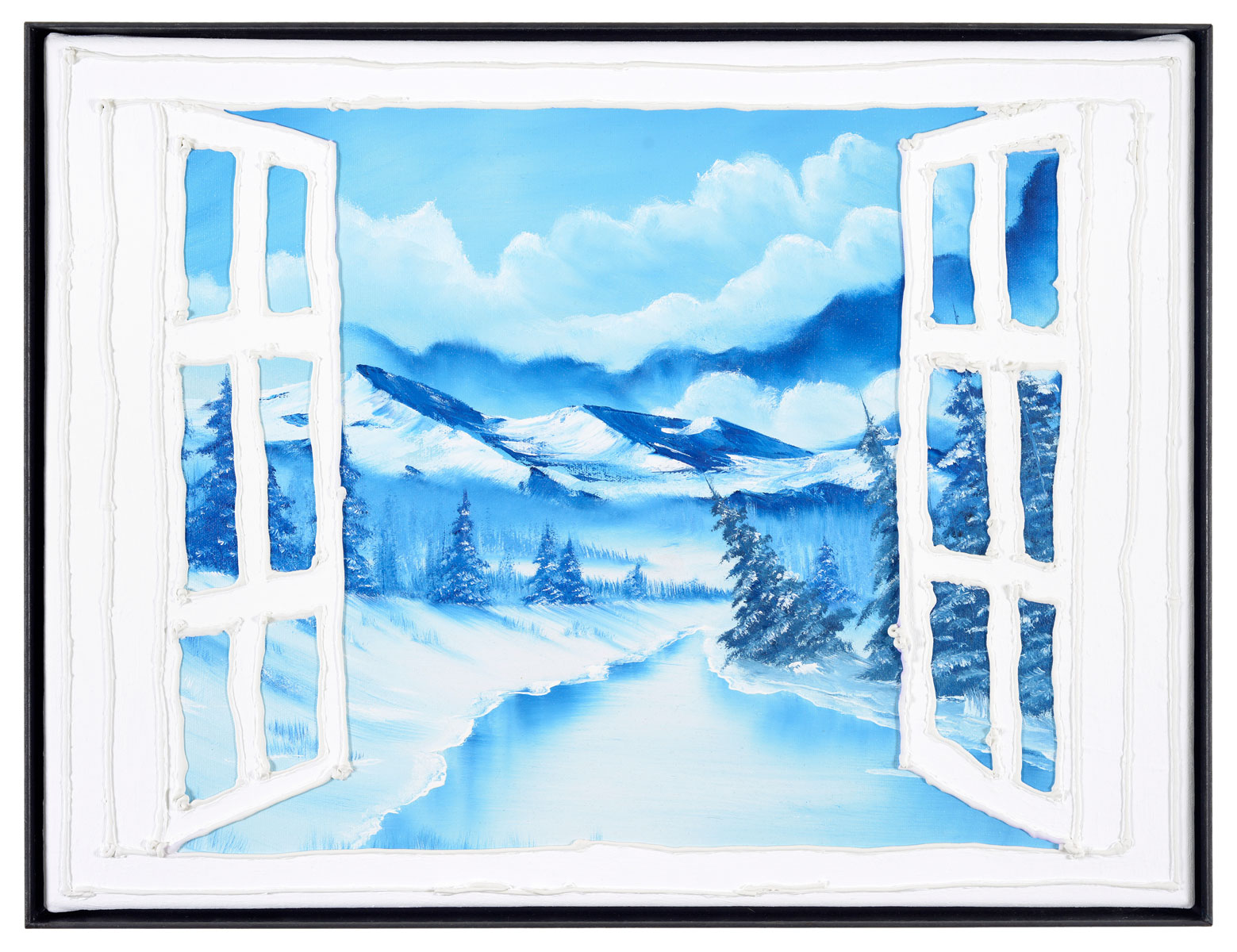 Weißbach approaches this material in different ways. Sometimes it only serves as an image carrier, which is overpainted all over, so that a new image is created on the second level. Sometimes he operates with omissions, so that layers connect and together form a new motif. Occasionally he paints over the original image, so that new and old images are created on a canvas side by side or on top of each other or remain there. Sometimes it is just Georg Weißbach's (G.W.) signature alone that characterizes the overpainting. In accordance with the repetitions of motifs in the original pictures (from mountain landscape to seascape), Weißbach also works serially in the overpainting: mountains of tilts line up with typologies of columns, cacti stand out, a collection of narrative textual works (sometimes painted, sometimes outlined - sometimes positive, sometimes negative) stands against a group of abstract compositions, while elsewhere figurations meet monochrome surfaces. Sometimes windows open up world of immages, sometimes a wall obscures the view in and on the picture.