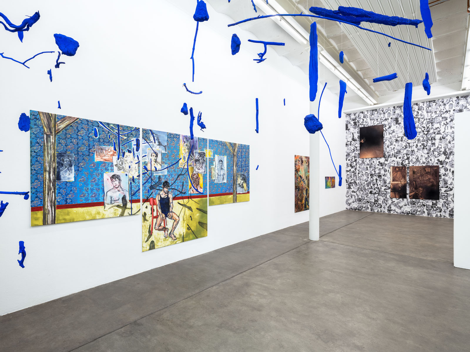 "curar a la familia" (Healing the Family) revolves around the themes of connection between humans and nature and the passage of time. Opening during the onset of spring, the exhibition celebrates the parallels between the richness of the natural world and tumultuous human conditions. Featuring Simon Adam Peter's characteristic sensual portraiture layered with imagery of flowers in various stages of bloom, whispering foliage, and scattered pieces of fallen wood, these paintings symbolize the superiority of nature and its potential for healing both individual souls and collective society. This paradigm, rooted in ancient wisdom, contrasts starkly with the patriarchal capitalist system of today, suggesting that a remedy for mass-scale alienation lies in a return to community values, reverence for nature, and acceptance of impermanence. "curar a la familia" invites viewers to viscerally experience this truth through their senses. The works predominantly showcases solitary, nude male figures, depicted either surrounded by plants or confined within interiors adorned with floral imagery. Immersed in layers of foliage, Peter's subjects are imbued with a sense of longing, often depicted in contemplation, their gaze extending beyond the confines of the canvas in search of solace. This interplay between interior and exterior settings guides the exhibition's internal narrative. Each painting serves as a microcosm, with some bursting with vibrant joy while others simmer in contemplative monochrome. Like the changing seasons, the pendulum of emotions never ceases its swing. To experience the elation of springtime rebirth, one must first navigate the darkness of winter. Peter's characters oscillate between passion and pain, experiencing moments of ecstasy amidst devastation. Just as winter is essential for the growth of flora and fauna, periods of reflection and confrontation with inner darkness are crucial for understanding the complexity of the human condition. By embracing the complexities of the soul, true connection and healing within the human family become possible.