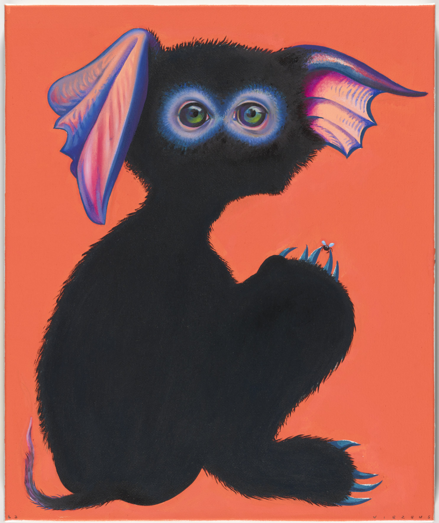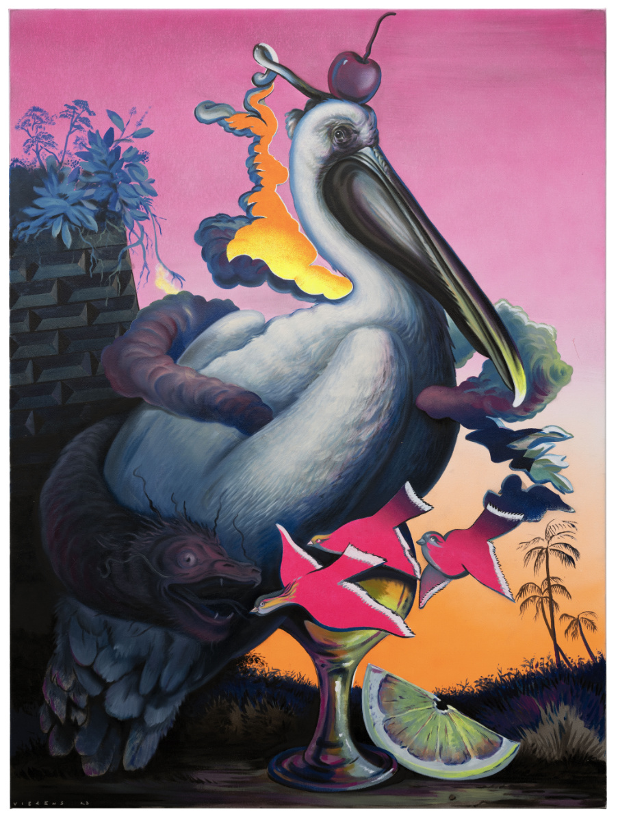 Auch „Hello, I‘ m Steve“ arbeitet mit einem starken Bruch. Ein vor Farbe und Kraft strotzendes Monster in Signalfarben steht alleine und in scharfem Kontrast zu seiner Umwelt vor einer tristen, heruntergekommenen Mauer. Auch wenn Viezens meint, er habe das Gemälde ursprünglich aus dem Impuls heraus gemalt, die negativen städtbebaulichen Veränderungen in Istanbul, das immer mehr zu einer Einheitsmetropole modernisiert wird, aufzugreifen, ist es doch auch sein ganz persönlicher Tribut an die heilende Kraft der Kunst. Um mit seinen Worten zu schließen: „Nach der Zweifelphase in der das Bild des Antonius entstanden ist, hat mir das ‚Monster der Kunst‘ mit seiner Komik und Sprengkraft wieder zu neuer Lebendigkeit verholfen.“